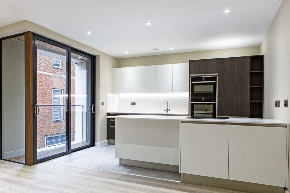 Arranged above a new Waitrose store in the heart of the town, the homes feature striking contemporary architecture and sleek interiors.